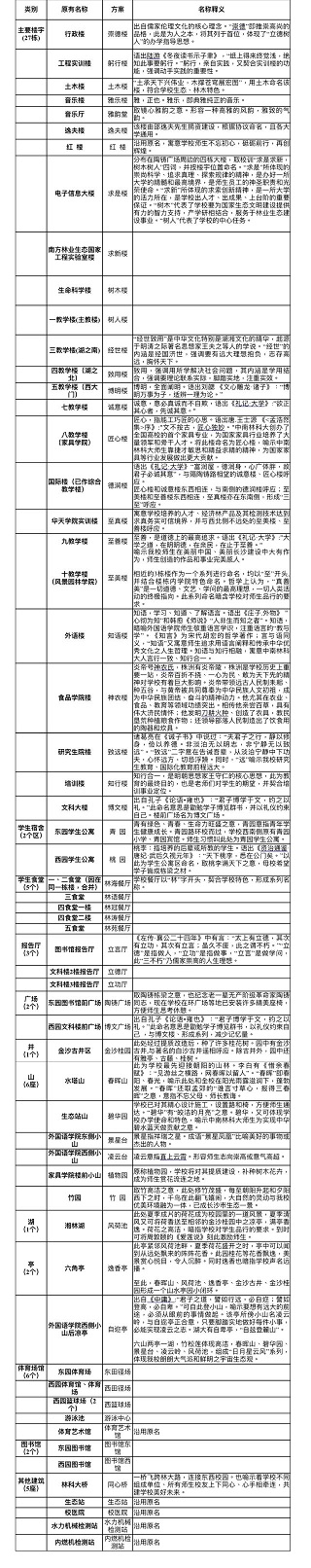 按照系统思维、兼容并蓄、东西统筹、小类呼应等原则,经过全面梳理,反复增删,数易其稿,多轮论证,提出了该方案,并经2018年4月11日的校长办公会讨论通过,学校官微被授权予以公示。若广大师生校友有好的建议,请在官微推文下直接留言,截止时间为4月23日下午5:00。下阶段,学校将精心组织楼宇名上墙和校园导视系统建设工作。