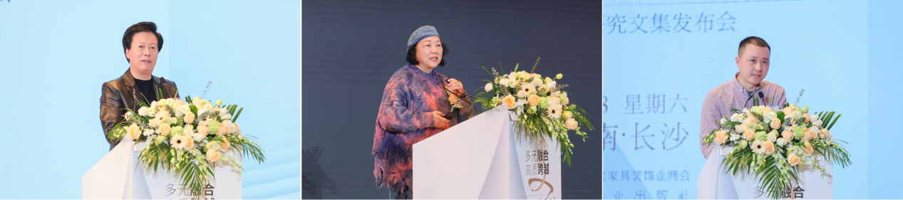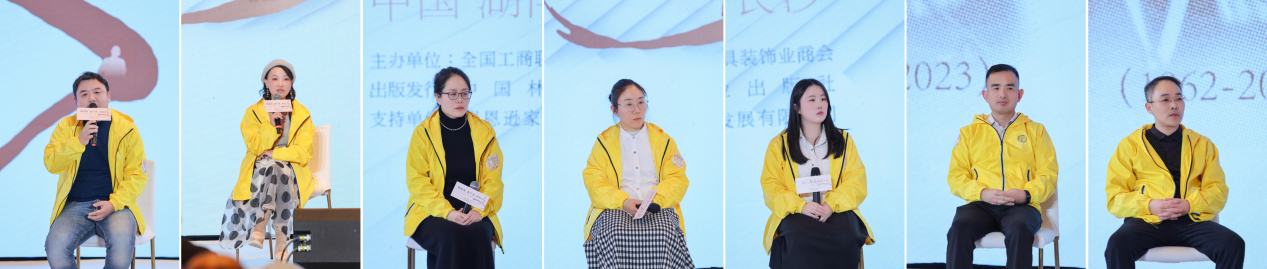 胡景初教授、戴向东教授、季铁教授、陈志斌先生、薛帅女士、谢鑫先生为论坛暨文集发布会致辞。学校家居与艺术设计学院院长戴向东在致辞中指出,在当今全球化的大趋势下,多元文化的交流碰撞,为家具设计带来了充满无限可能的创新思维与发展机遇。在数字化、智能化、多元化时代背景下,“低碳设计、适老化设计、智能家具、智慧家居、智能制造”已经成为绿色大家居产业发展的主流,我们站在时代前沿,要肩负起推动家具设计实现高质跨越的重任。欢迎校友们常回母校,欢迎各位行业优秀的精英常来校交流,分享经验,共同探索家具设计领域的无限可能!为未来的“家具人”指引前行的方向。