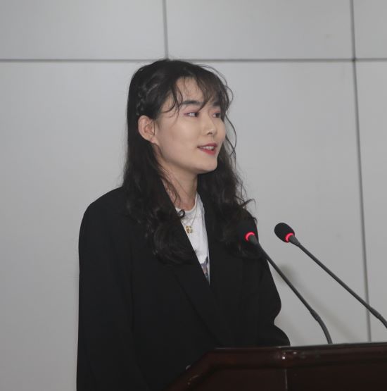 获奖学生代表-食品科学与工程学院张楠同学发表感言。她对获评金龙鱼奖学金感到无比荣幸,向关心和帮助大学生成长的益海嘉里集团表示衷心感谢,并表示以此为新的起点,不忘初心、继续努力,保持好奇心、热心,更加耐心、细心的学习和工作,以优异的成绩回报社会。