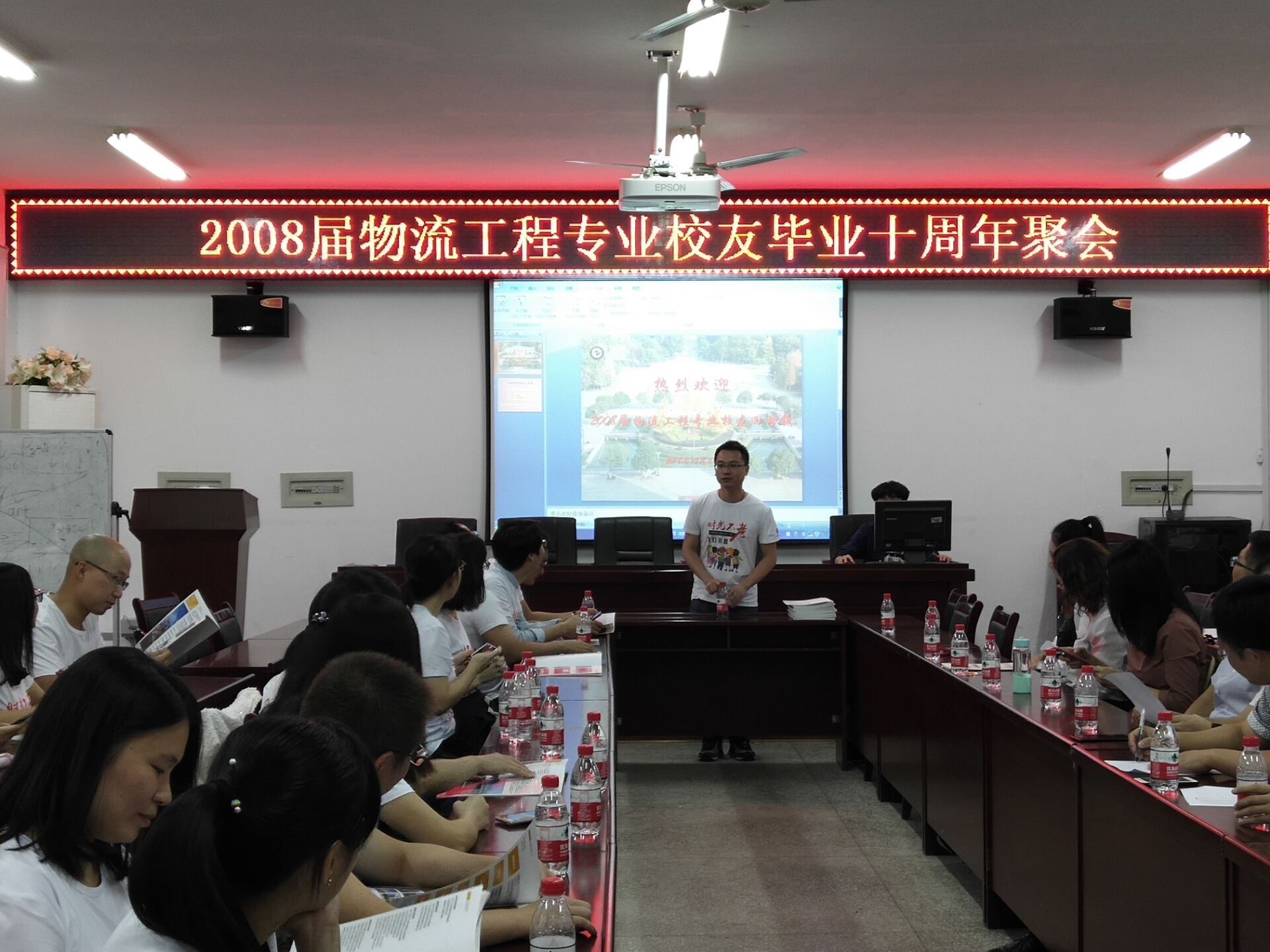 10月2日下午,在喜迎中南林业科技大学六十周年华诞之际,物流与交通学院2008届物流工程专业校友毕业十周年聚会成功于逸夫楼333顺利举行。2008届物流工程专业毕业生是我院第一届物流专业毕业生,30多名校友齐聚一堂,同时邀请了学院院长庞燕老师、赵培瑞老师、张双利老师、胡亚特老师、姚遥老师、黄向宇老师、陈筱清学长(代理班主任)、陈玲老师参加本次活动。