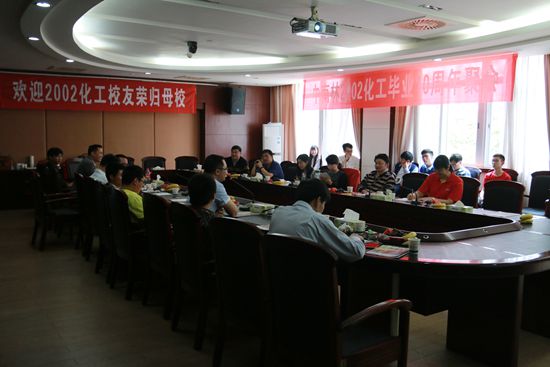 5月1日,材料学院02级化工专业校友回访母校,并举行了毕业十周年纪念活动。在行政楼四楼三会议室,吴志平、李湘洲、旷春桃、罗洁、杨焰、蒋新元、王贵武、孙汉洲、刘慎几位老教师应邀与校友们座谈,共叙师生情、同窗谊。部分化工、林化专业的在校生也参加了交流会。