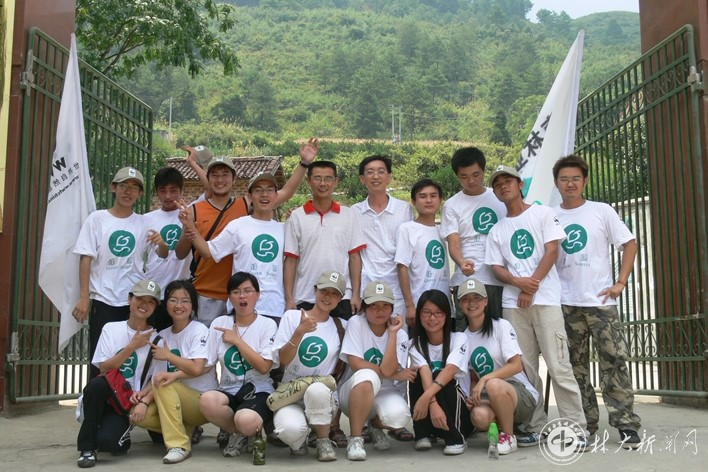 何建军(后排左4)组织中南林科大绿源环保协会开展”全国湿地使者行动“暑期三下乡活动