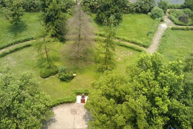 左边的石凳已经被灌木淹没,无人打理